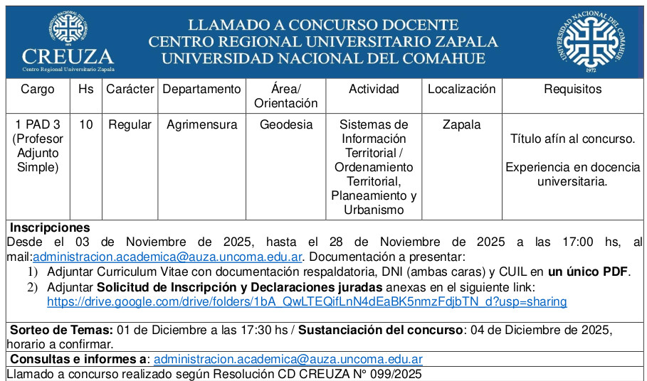 Av. 12 de julio y Rahue (8340) Zapala (Neuquén)