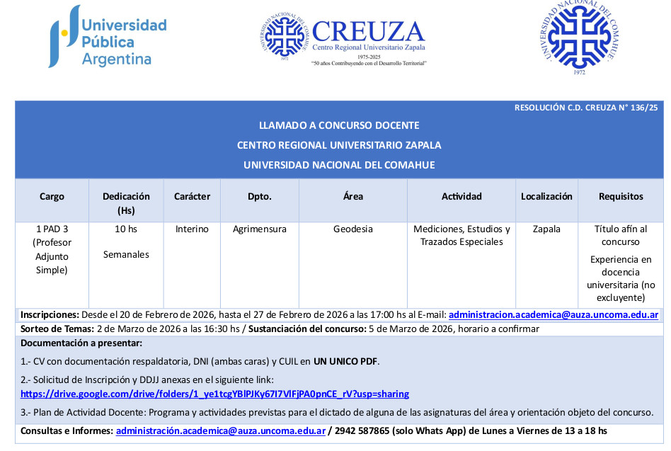 Av. 12 de julio y Rahue (8340) Zapala (Neuquén)