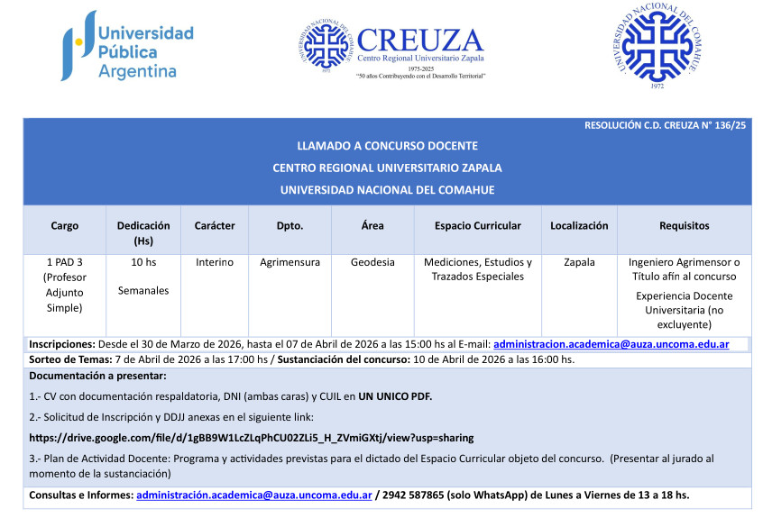 Av. 12 de julio y Rahue (8340) Zapala (Neuquén)